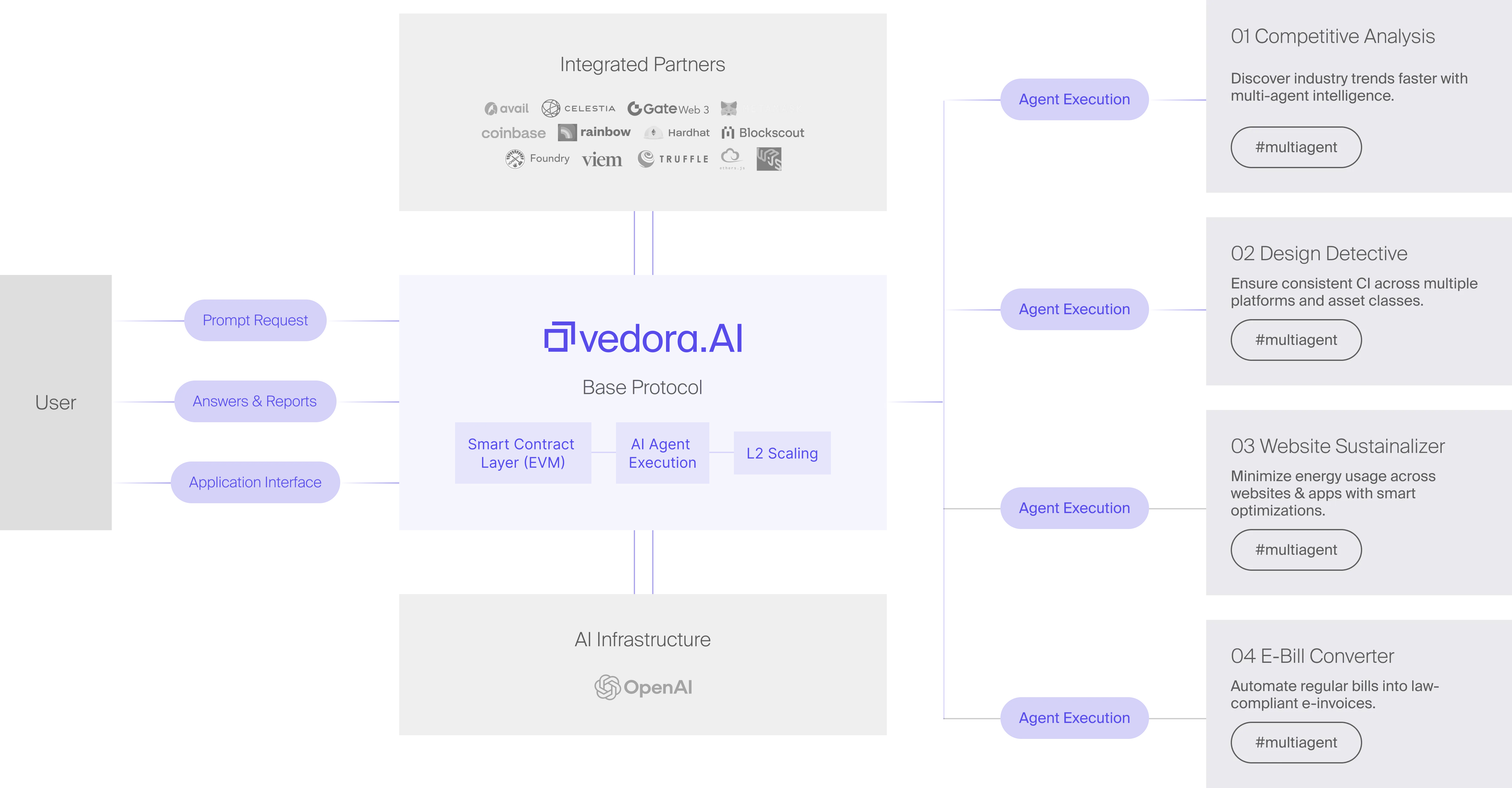 Vedora.ai is a Layer 2 blockchain that serves as the infrastructure layer for AI-enabled applications.